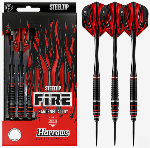 Fire High Grade Alloy je najnoviji dodatak dinamičnoj ponudi strelica. Sužena drška je srednje teška s mješavinom shark i ring rezova, što joj daje upečatljiv izgled i optimalan osjećaj. Inspirirana Fire Infernom, ova strelica ima izdržljiv crni premaz sa živopisnim srebrnim i crvenim prstenovima. Strelice Fire Alloy isporučuju se s crnim Speedline nastavcima i Fire perima. Strelice s mekim vrhom dostupne su u težini od 16 g.